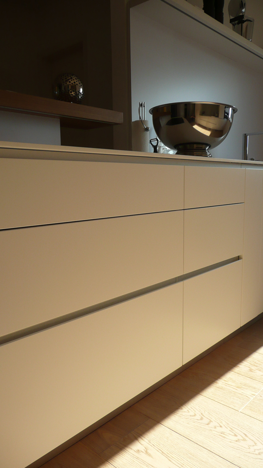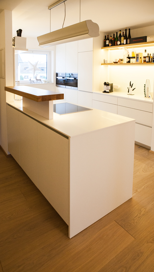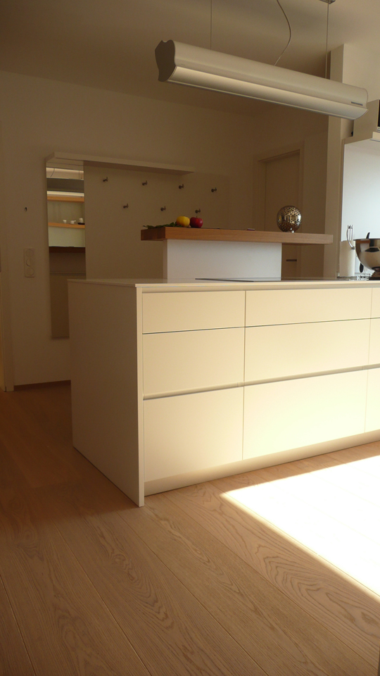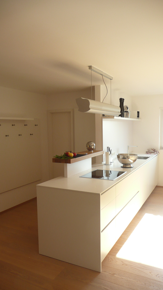 küche c Entwurf: Thomas Lueg Fronten: Schleiflack mit Griffmulden Arbeitsplatte: Corian zurück zur Übersicht