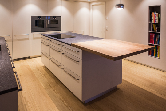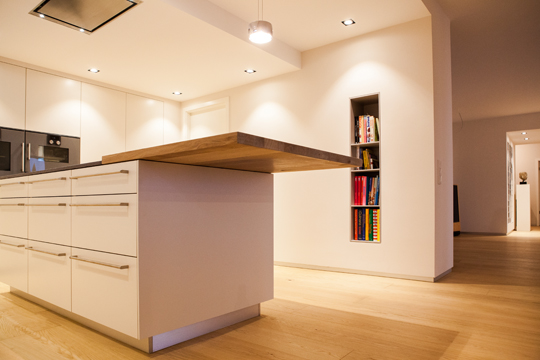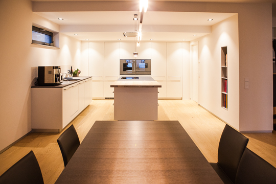 küche e Entwurf: Thomas Lueg Fronten: Schleiflack Arbeitsplatte: Stein, Porfido Valcamonica, bruchrau zurück zur Übersicht